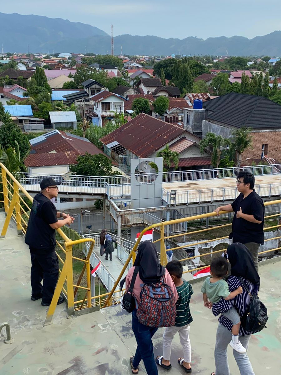 Dari dek kapal, tim menyaksikan bekas gelombang yang pernah menelan kota, retakan dan karat yang menyimpan cerita duka, sekaligus simbol ketahanan dan harapan masyarakat Aceh.