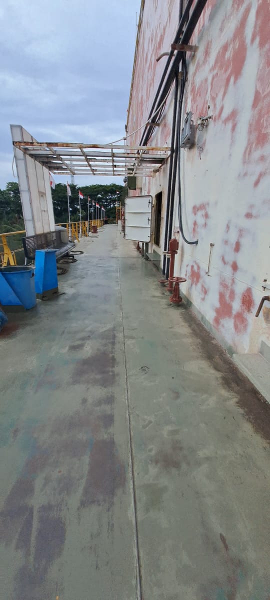 Bendera merah putih yang berkibar di beberapa tiang kapal menegaskan identitas nasional dan kebanggaan lokal. Pipa-pipa, ventilasi, dan panel kontrol menunjukkan kompleksitas teknologi yang berfungsi menghadirkan energi, sekaligus mengingatkan bahwa manusia hanya bisa mengelola, bukan mengendalikan alam sepenuhnya.