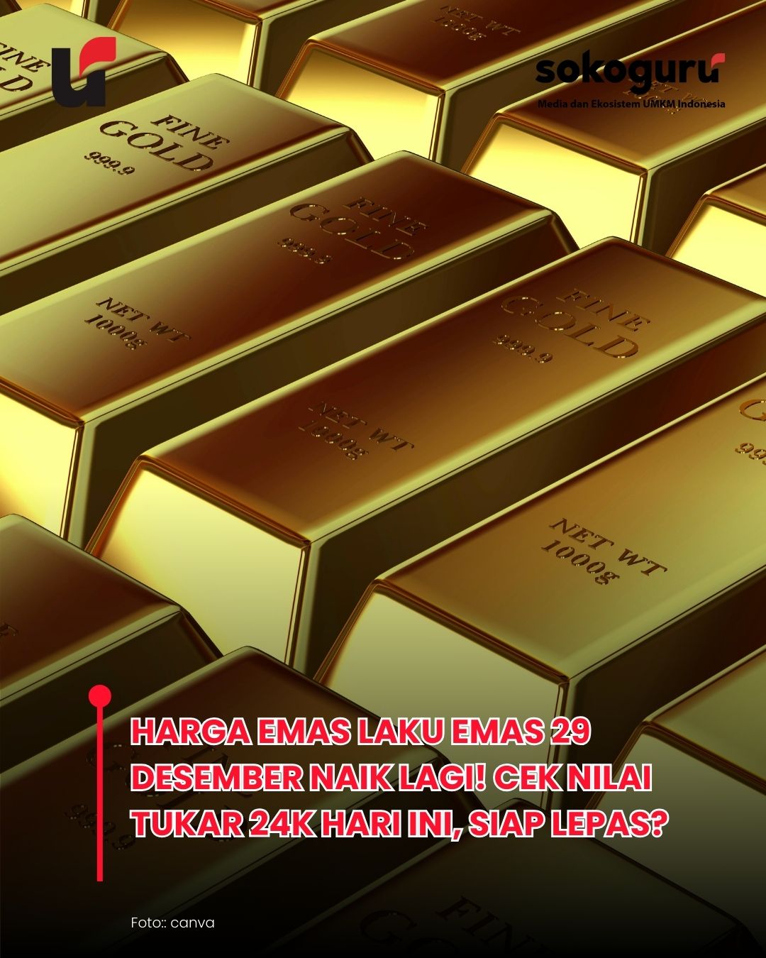 SOKOGURU - Kejutan Akhir Tahun! Harga Emas Antam & Laku Emas Melonjak Rp8.000, Waktunya Jual? Mau jual emas? Simak harga buyback Laku Emas hari ini yang meroket. Intip daftar harga per karat mulai dari 9K sampai Antam 24K terbaru di sini, jangan telat!