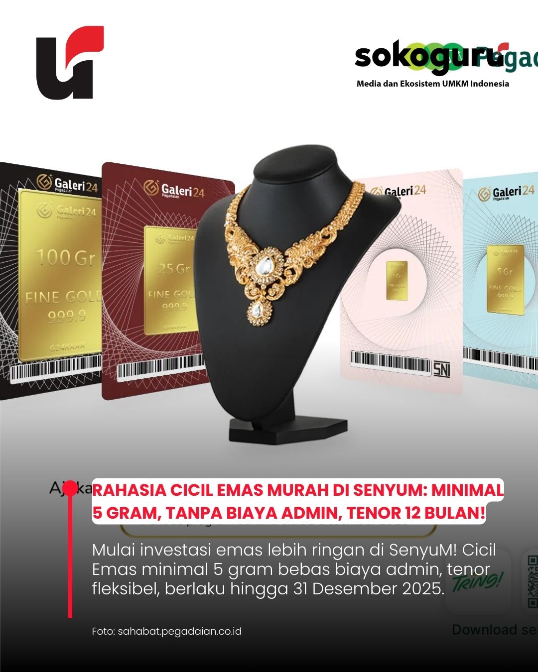 SOKOGURU - Kini memulai investasi emas terasa lebih ringan dengan promo terbaru dari outlet SenyuM, di mana kamu bisa mendapatkan gratis biaya administrasi saat mengajukan Cicil Emas minimal 5 gram.