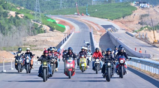 “Ya tadi mencoba jalan itu paling gampang kalau kita naik sepeda motor. Ada gini sedikit saja akan terasa. Dan tadi saya mengajak beliau-beliau ini semuanya naik motor merasakan jalan tol menuju IKN,” ujarnya kepada awak media di kawasan IKN.