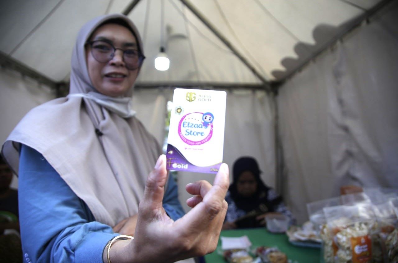 "Biasanya kalau beli banyak dapat potongan harga, tapi kami kasih bonus lebih spesial. Kalau beli empat bungkus, bisa dapat emas logam mulia 0,001 gram," ujar Sri sembari memperlihatkan emas kecil yang ditempel di kartu.