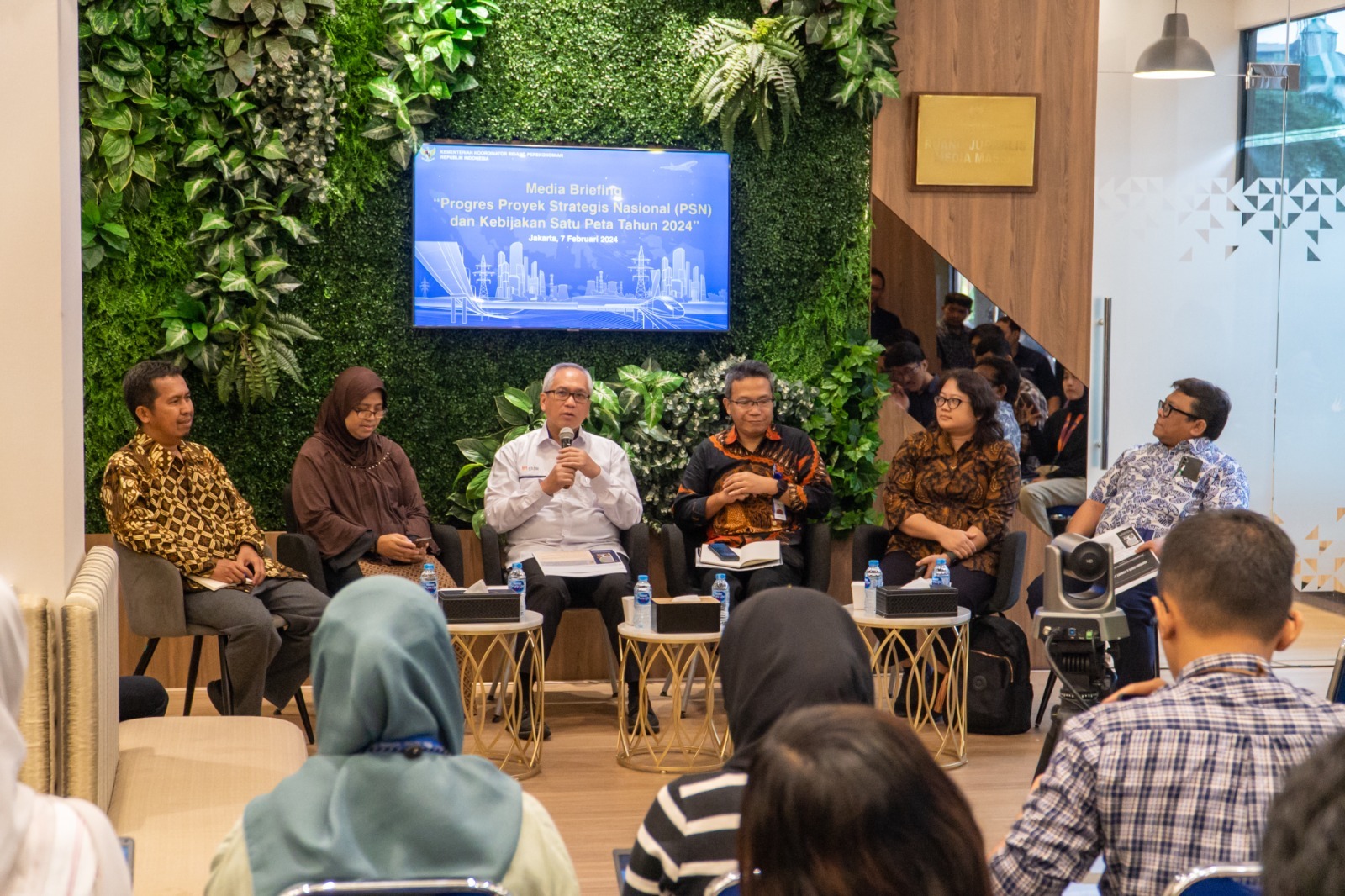 Guna menyampaikan perkembangan dan capaian kebijakan terkait isu tersebut, Deputi Bidang Pengembangan Wilayah dan Tata Ruang Wahyu Utomo dengan didampingi jajaran Asisten Deputi melaksanakan Media Briefing Progres Proyek Strategis Nasional (PSN), Kebijakan Satu Peta, dan Reforma Agraria Tahun 2024 di Kantor Kementerian Koordinator Bidang Perekonomian, Selasa (7/02).