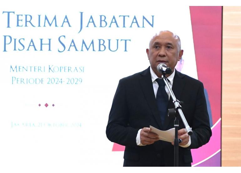 Dalam serah terima jabatan yang berlangsung di Jakarta, Senin (21/10), Teten menyerahkan amanah kepemimpinan kepada Menteri Koperasi periode 2024-2029, Budi Arie Setiadi.