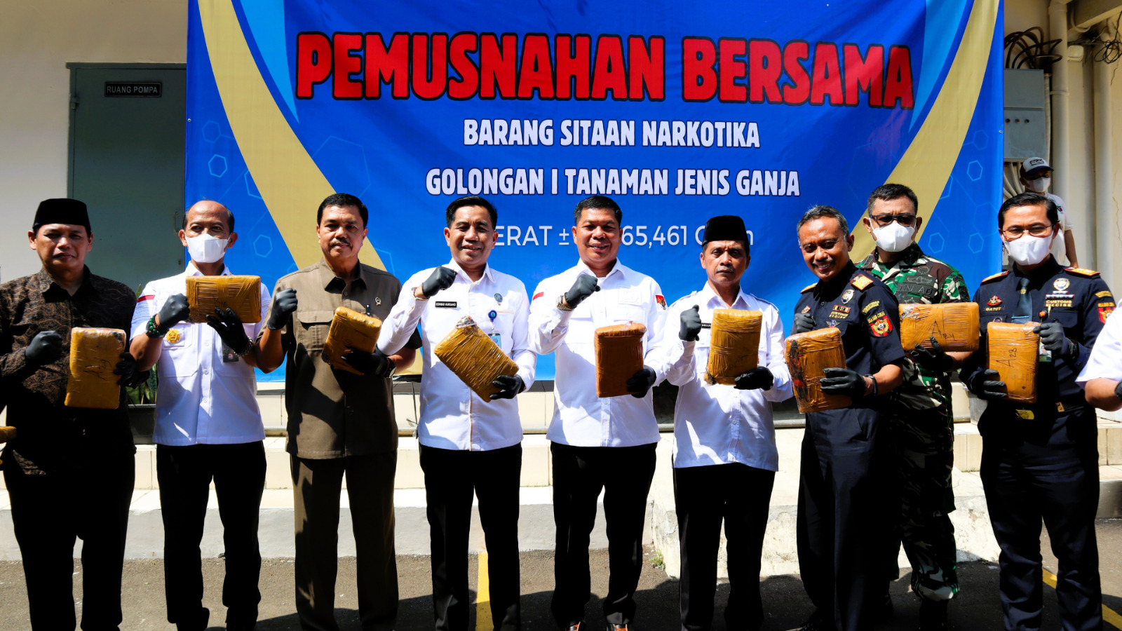 KANTOR Wilayah Bea Cukai Banten, bekerja sama dengan Badan Narkotika Nasional Provinsi (BNNP) Banten, memusnahkan 110 kilogram ganja dalam sebuah acara di Cilegon.