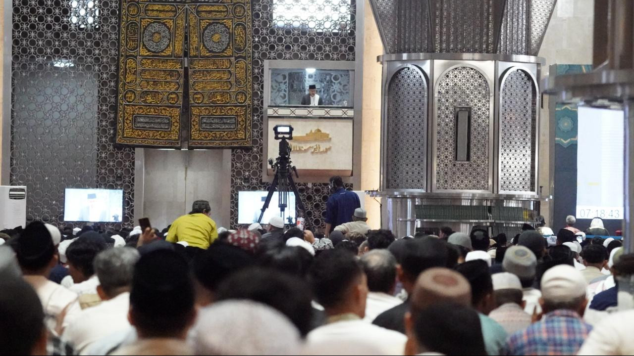 PULUHAN ribu umat Islam melakukan salat Idulfitri 1445 H di Masjid Istiqlal, Jakarta. Presiden Joko Widodo, Wakil Presiden KH Ma'ruf Amin, Imam Besar Masjid Istiqlal KH Nasaruddin Umar, Menteri Agama Yaqut Cholil Qoumas, dan sejumlah pejabat lainnya turut ikut salat di masjid itu.