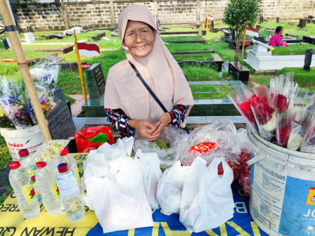 "Lonjakan pembeli biasa terjadi di H+1 Lebaran. Saya bisa menjual hingga 50 kantong bunga tabur dan 50 botol air mawar," bebernya.