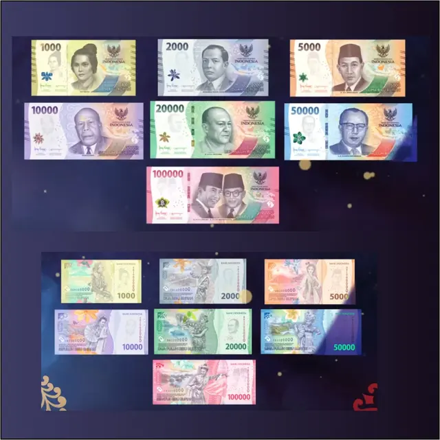 Uang rupiah kertas tahun emisi 2022 yang diluncurkan hari ini meliputi pecahan Rp.1000, Rp.2000, Rp.5000, Rp.10.000, Rp.20.000, Rp.50.000 hingga Rp.100.000