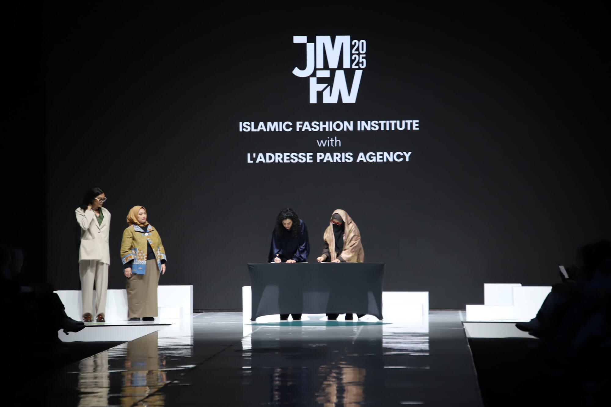Pada kesempatan tersebut, Mardyana menyaksikan penandatanganan pernyataan bersama (joint statement) antara L'adresse Paris Agency dan Islamic Fashion Institute (IFI) serta delapan jenama dalam negeri.