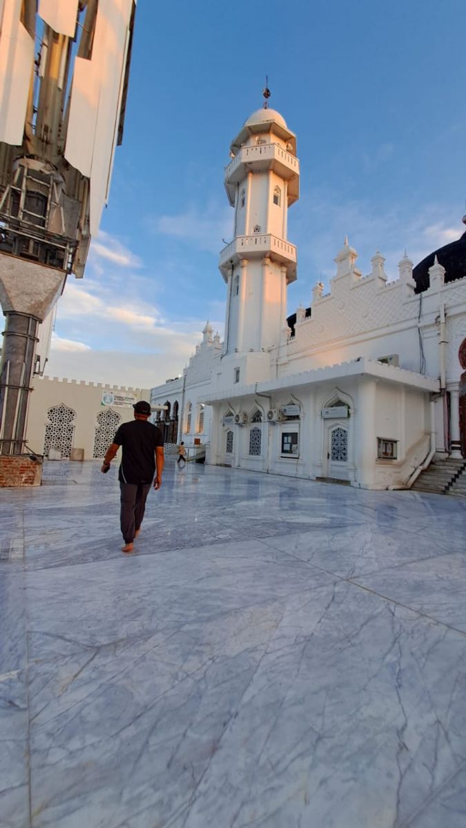 SENJA baru saja turun di Banda Aceh, ketika cahaya jingga membias di lantai marmer putih yang berkilau.