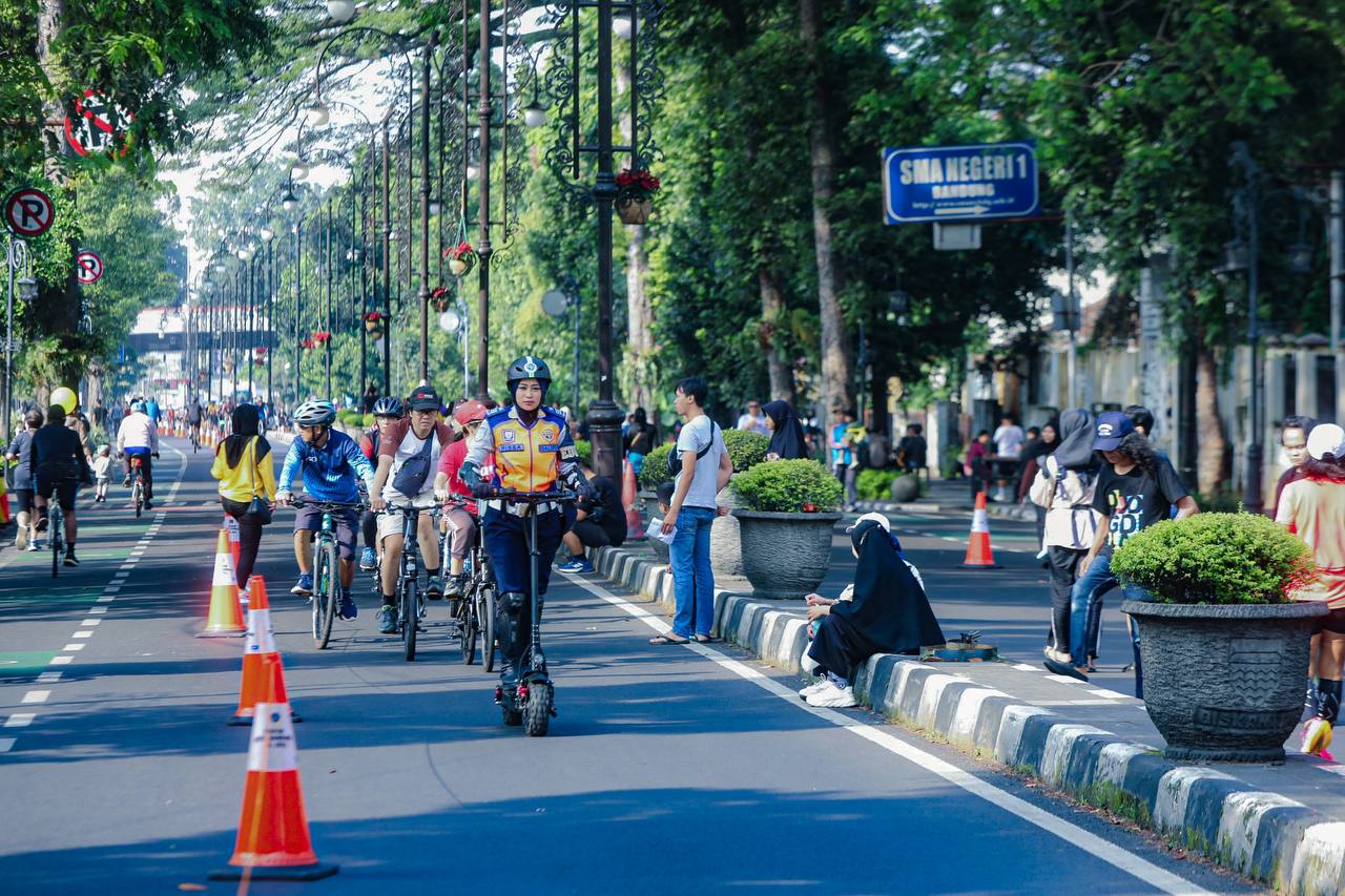 Sebagian jalan di kawasan Dago ditutup untuk kendaraan bermotor, memberikan kesempatan bagi orang-orang untuk menikmati suasana pedesaan yang tenang di tengah kota yang ramai.