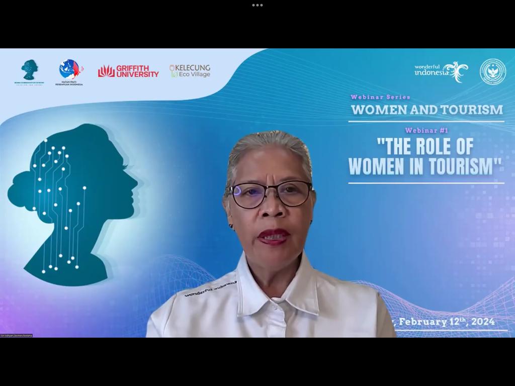 Webinar yang dihadiri akademisi, pelaku industri dan mahasiswa ini, merupakan hasil kolaborasi Kementerian Pariwisata dan Ekonomi Kreatif/Badan Pariwisata dan Ekonomi Kreatif (Kemenparekraf/Baparekraf), Griffith Institute of Tourism-Australia, dan Women Communication Network.